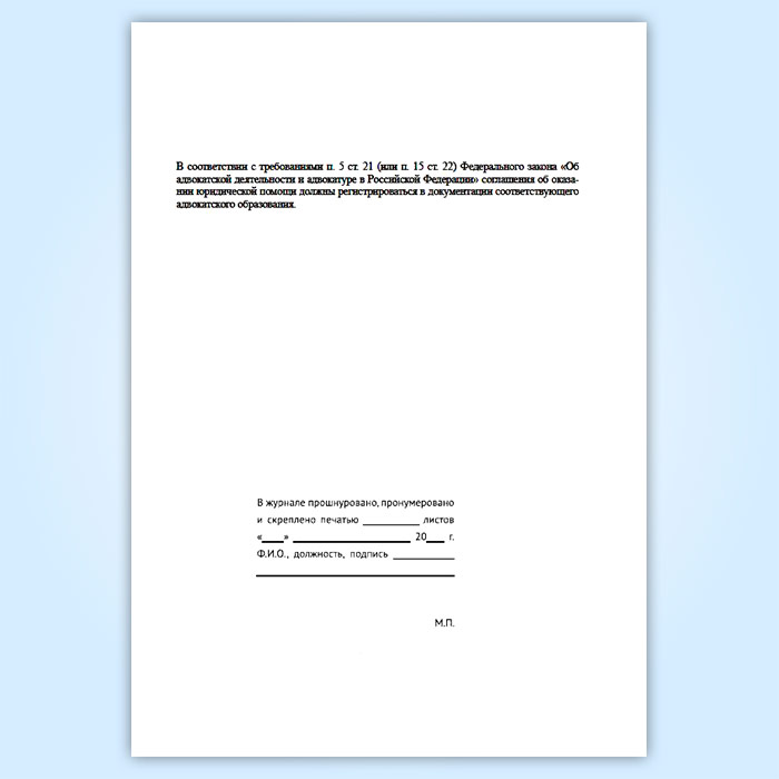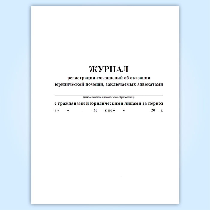 Журнал регистрации соглашений об оказании юридической помощи, заключаемых адвокатами с гражданами и юридическими лицами в Альметьевске купить