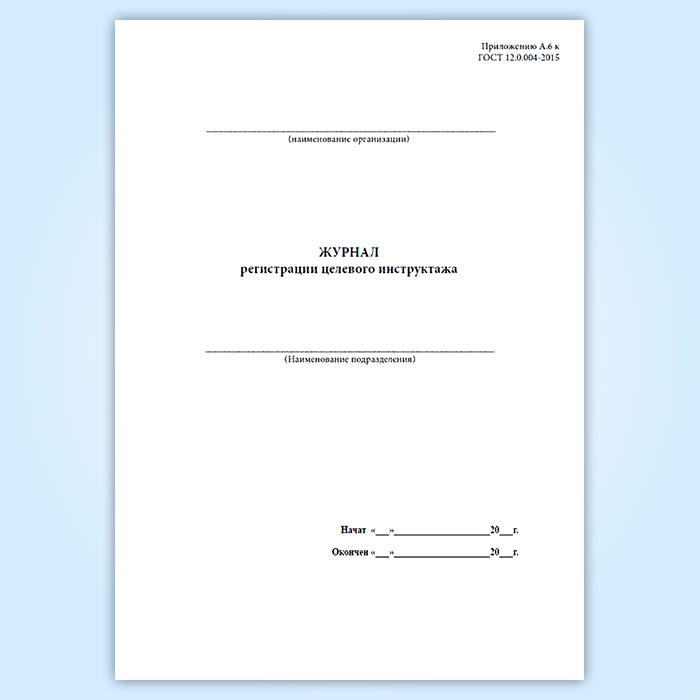 Журнал регистрации целевого инструктажа (ГОСТ 12.0.004-2015) в Альметьевске купить