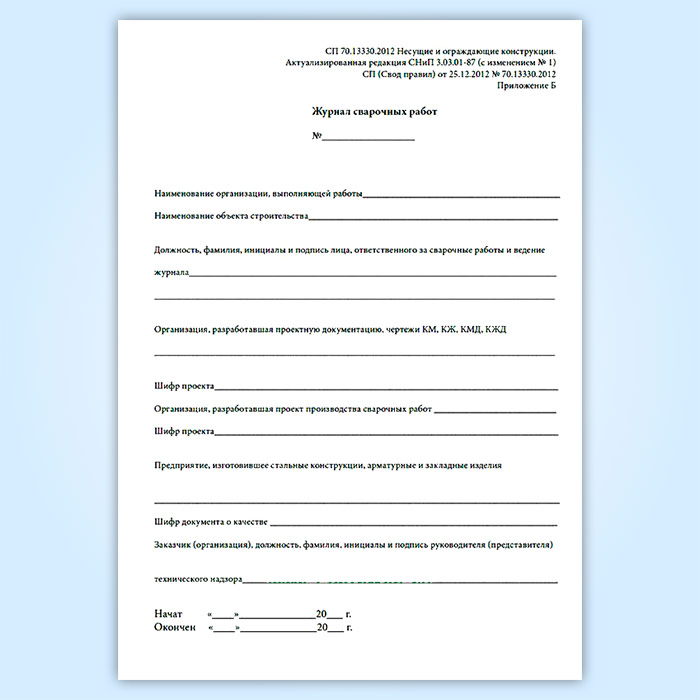 Журнал сварочных работ (приложение к СП 70.13330.2012) в Альметьевске купить