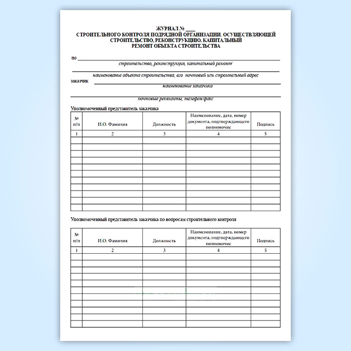 Журнал строительного контроля подрядной организации в Альметьевске купить