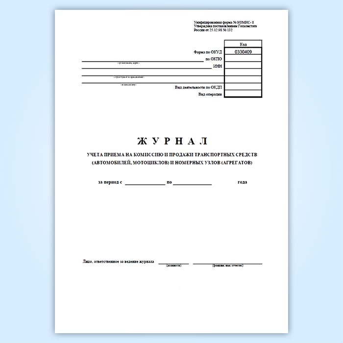 Журнал учета приема на комиссию и продажи транспортных средств (автомобилей, мотоциклов) и номерных узлов (агрегатов) (форма № КОМИС-8) в Альметьевске купить
