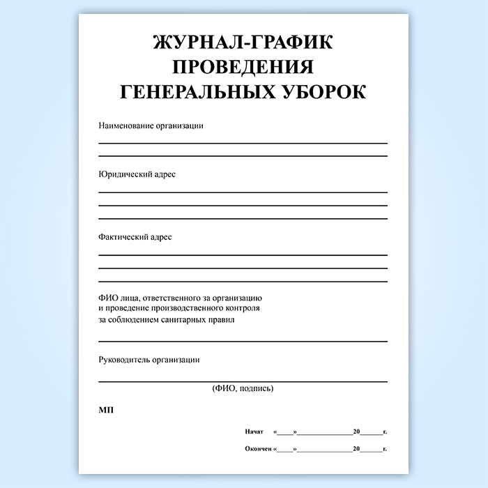 Журнал-график проведения генеральных уборок в Альметьевске купить