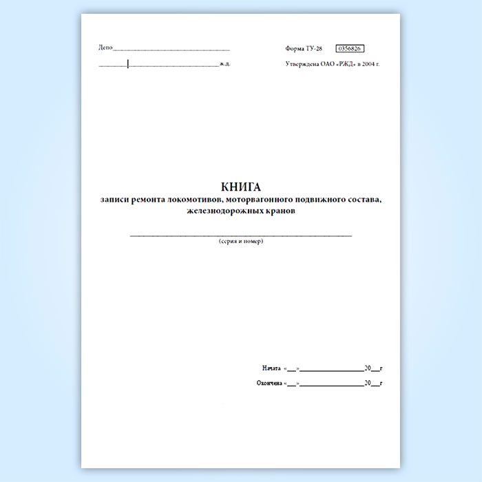 Книга записи ремонта локомотивов, моторвагонного подвижного состава железнодорожных кранов (ТУ-28) в Альметьевске купить