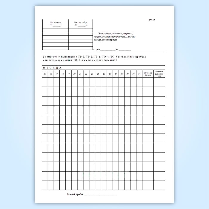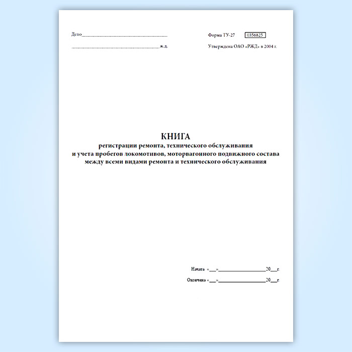 Книга регистрации ремонта, технического обслуживания и учета пробегов локомотивов, моторвагонного подвижного состава между всеми видами ремонта и технического обслуживания (форма ТУ-27) в Альметьевске купить