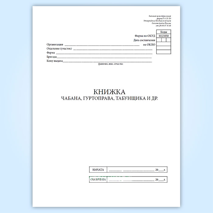 Книжка чабана, гуртоправа, табунщика и др. (форма № СП-50) в Альметьевске купить
