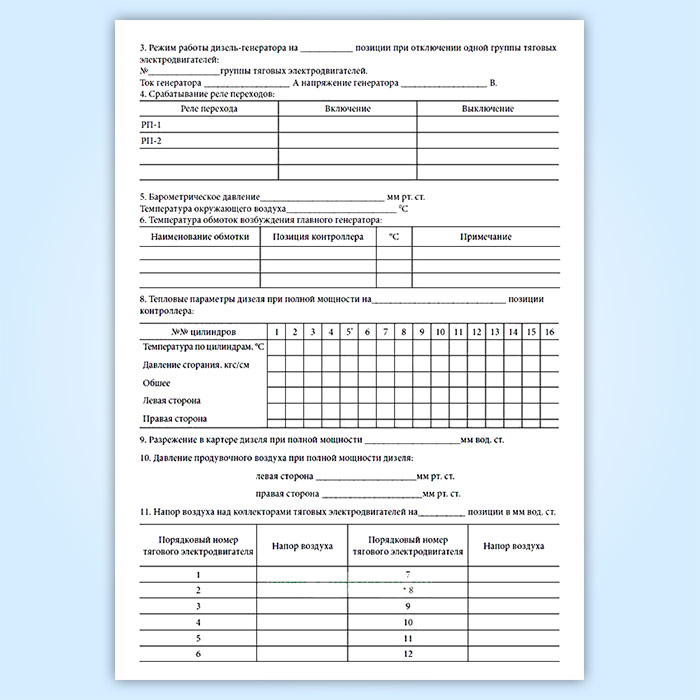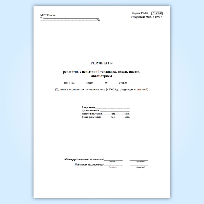 Результаты реостатных испытаний тепловоза, дизель-поезда, автомотрисы (форма ТУ-148) в Альметьевске купить