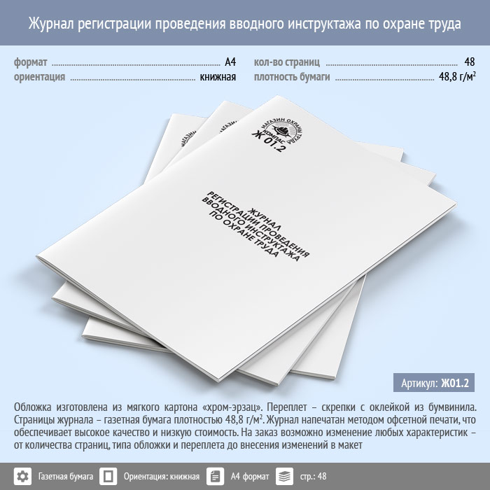 Журнал регистрации проведения вводного инструктажа по охране труда (48 стр., Ж01.2) в Альметьевске купить