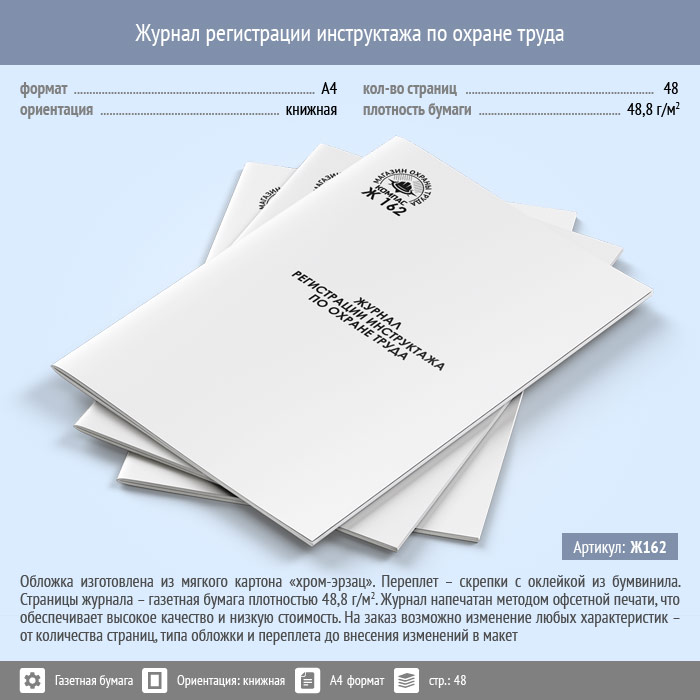 Журнал регистрации инструктажа по охране труда (48 стр., Ж162) в Альметьевске купить