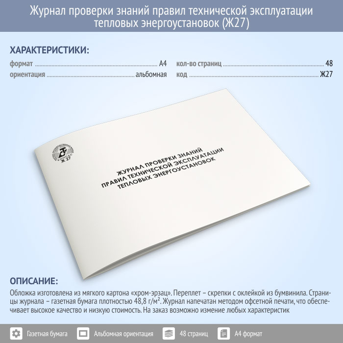 Журнал проверки знаний правил технической эксплуатации тепловых энергоустановок (48 стр., Ж27) в Альметьевске купить