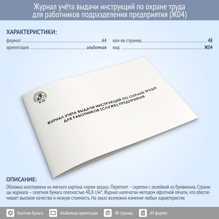 Журнал учета выдачи инструкций по охране труда для работников подразделений (служб) предприятия (48 стр., Ж04) в Альметьевске купить