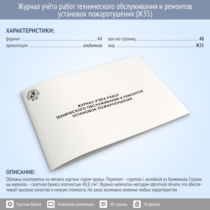 Журнал учета работ технического обслуживания и ремонтов установок пожаротушения (48 стр., Ж35) в Альметьевске купить