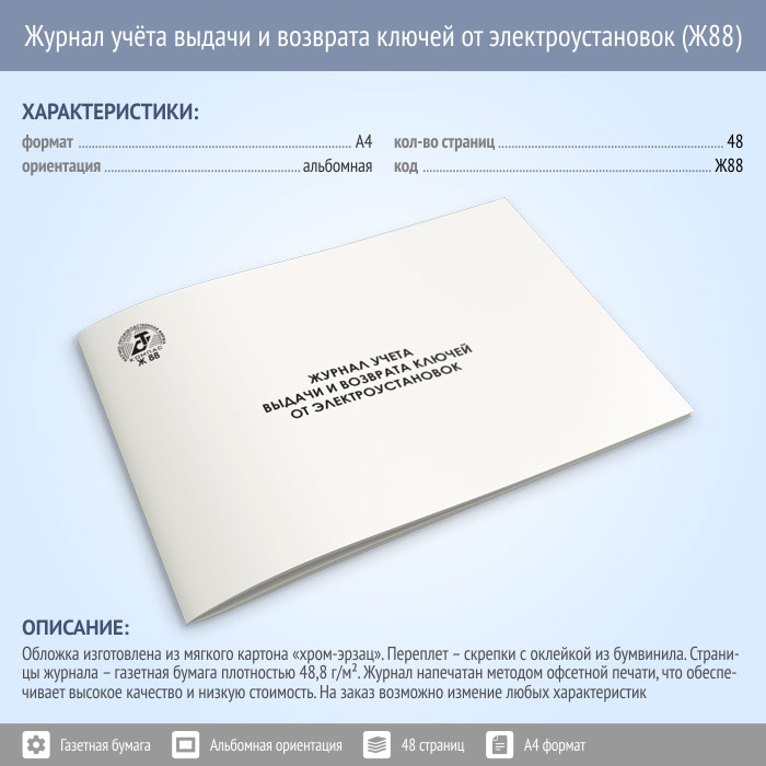 Журнал учета выдачи и возврата ключей от электроустановок (48 стр., Ж88) в Альметьевске купить