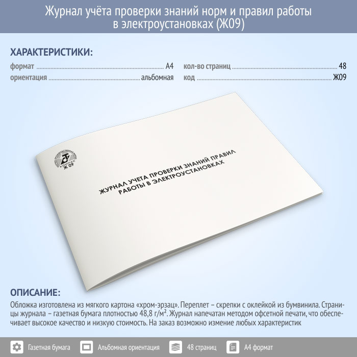 Журнал учета проверки знаний норм и правил работы в электроустановках (48 стр., Ж09) в Альметьевске купить