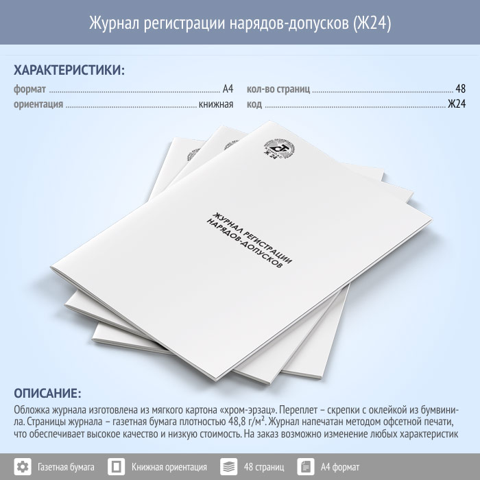 Журнал регистрации нарядов-допусков (48 стр., Ж24) в Альметьевске купить