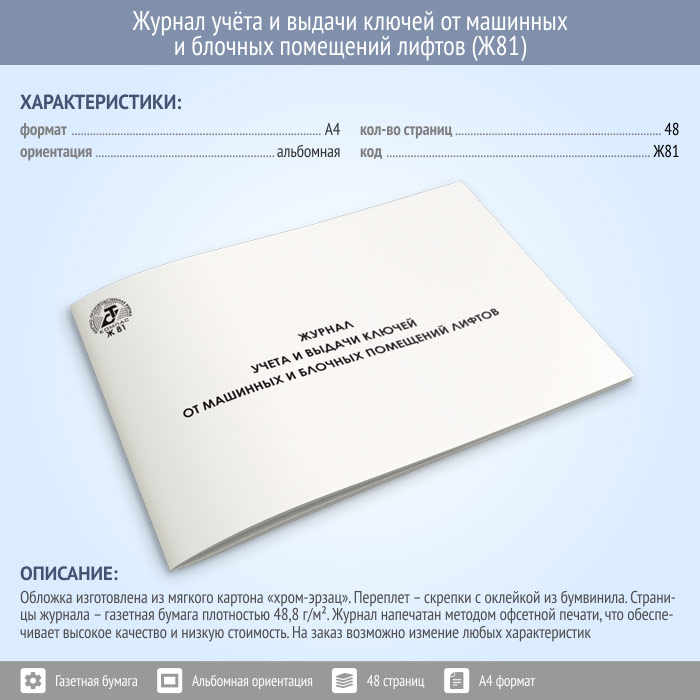 Журнал учета и выдачи ключей от машинных и блочных помещений лифтов (48 стр., Ж81) в Альметьевске купить