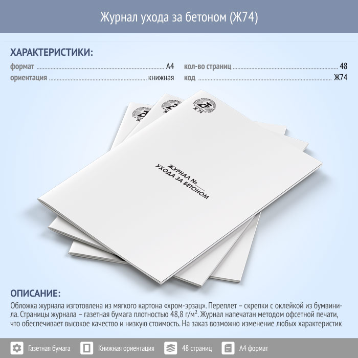 Журнал ухода за бетоном (48 стр., Ж74) в Альметьевске купить