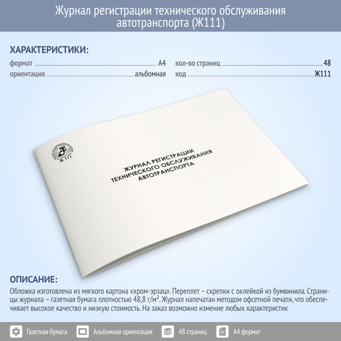 Журнал регистрации технического обслуживания автотранспорта (48 стр., Ж111) в Альметьевске купить