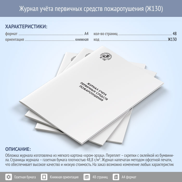 Журнал учета первичных средств пожаротушения (48 стр., Ж130) в Альметьевске купить