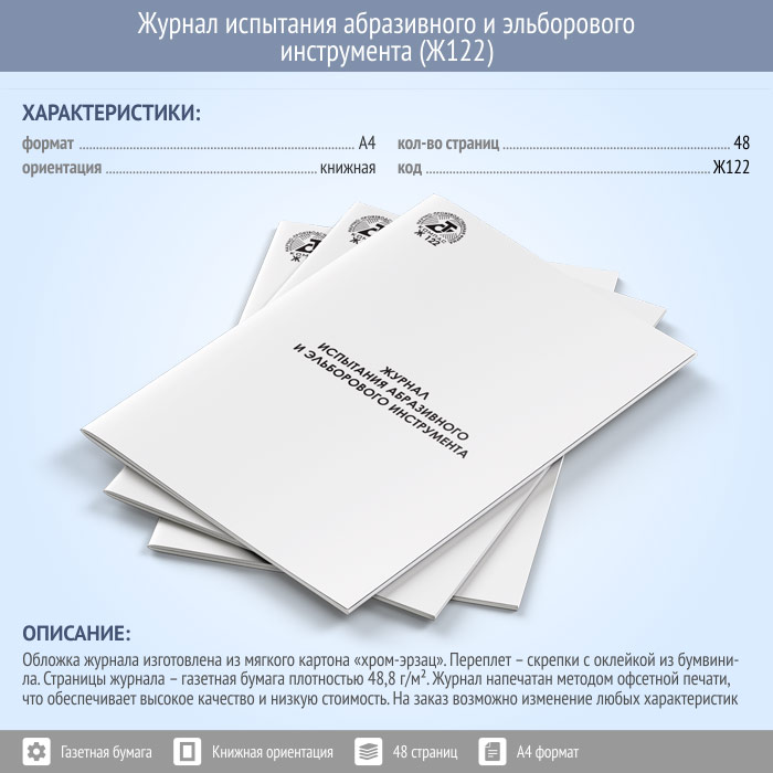 Журнал испытания абразивного и эльборового инструмента (48 стр., Ж122) в Альметьевске купить
