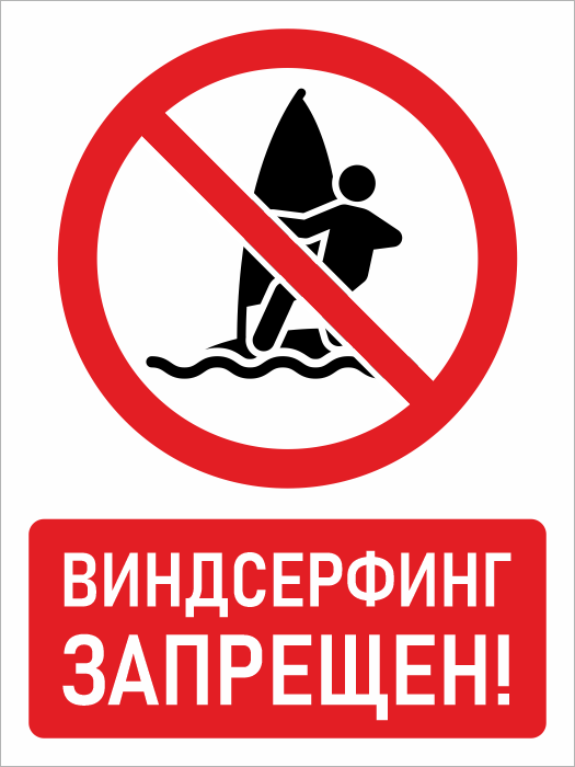 Знак «Виндсерфинг запрещен!», БВ-40 как видно из названия, запрещает в устанавливаемом месте занятия виндсерфингом