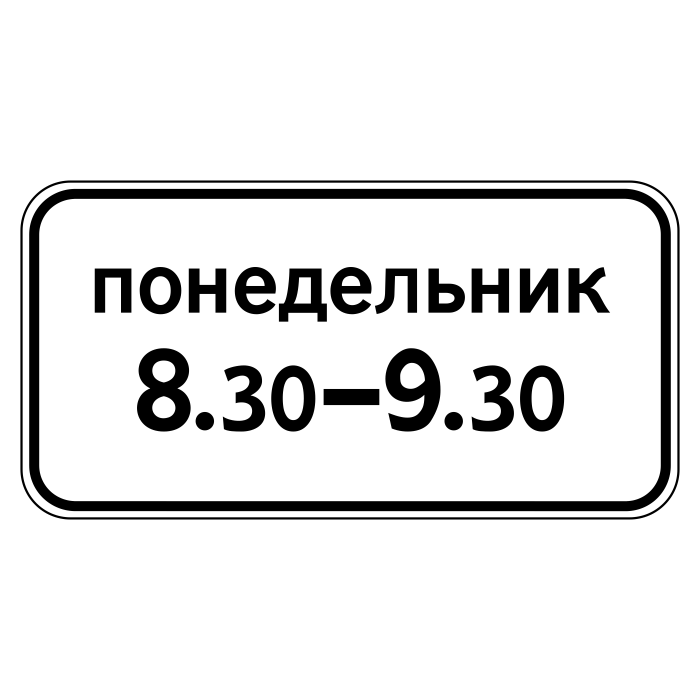 Дорожный знак 8.5.7 «Время действия» (металл 0,8 мм, II типоразмер: 350х700 мм, С/О пленка: тип А коммерческая) в Альметьевске купить
