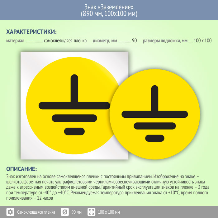 Знак (плакат) «Заземление», S46 (пленка, диаметр 90 мм, 100х100 мм) в Альметьевске купить