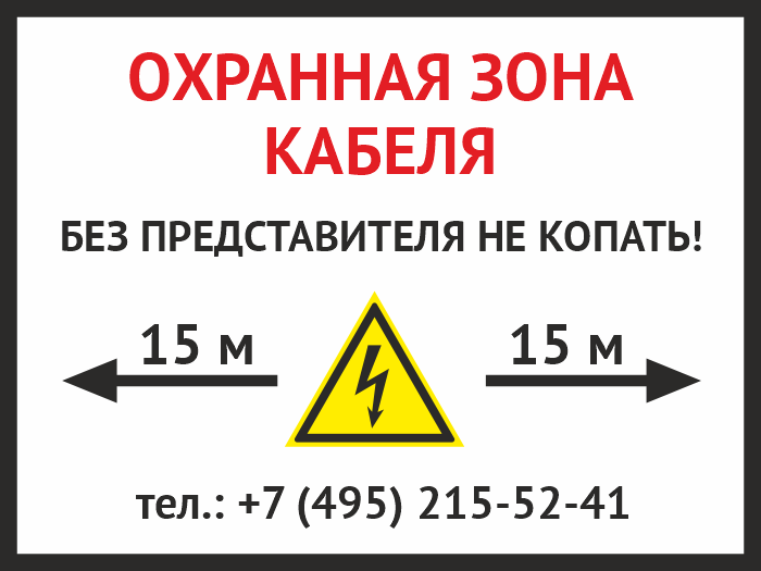 Знак «Охранная зона кабеля. Без представителей не копать», OZK-02 (пластик 2 мм, 400х300 мм) в Альметьевске купить