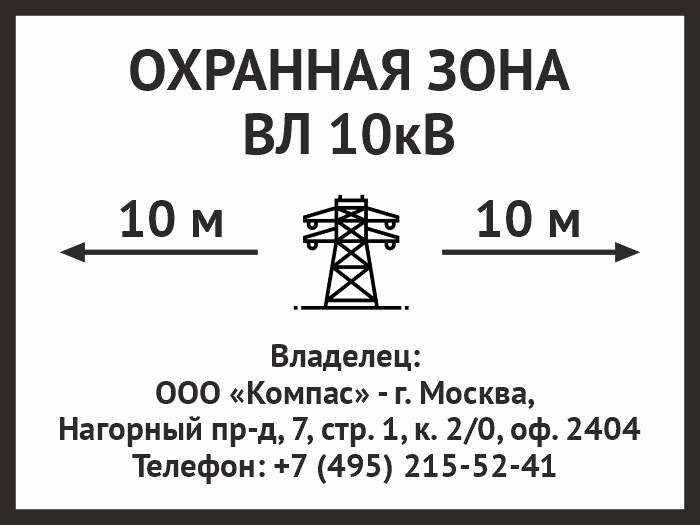 Знак «Охранная зона ВЛ 10 кВ (высоковольтной линии)», OZK-07 (пластик 2 мм, 400х300 мм) в Альметьевске купить