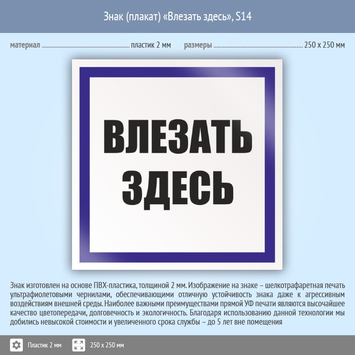 Знак (плакат) «Влезать здесь», S14 (пластик, 250х250 мм) в Альметьевске купить