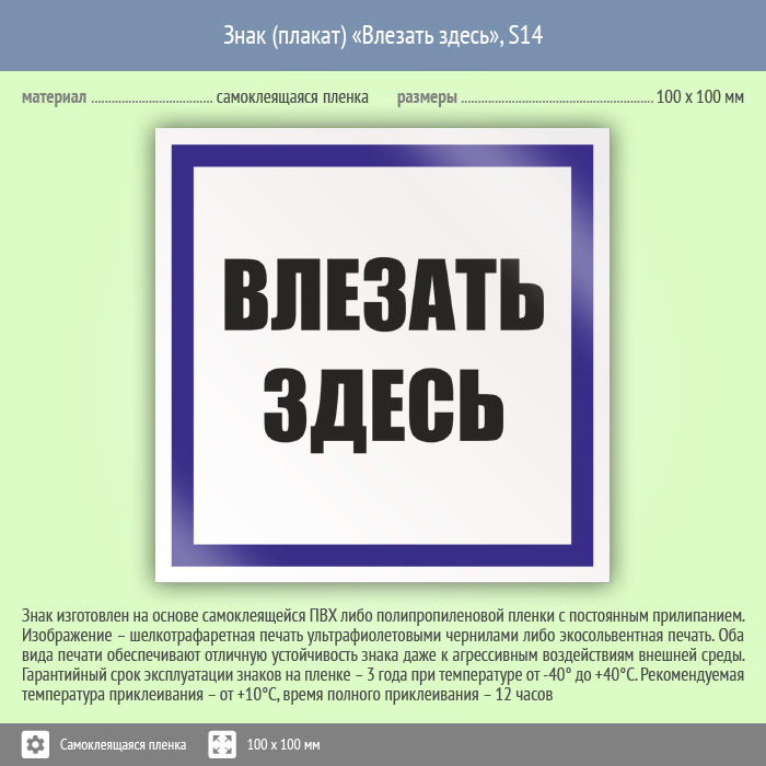 Знак (плакат) «Влезать здесь», S14 (пленка, 100х100 мм) в Альметьевске купить