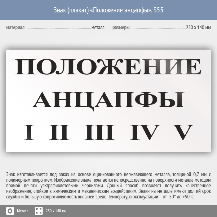 Знак (плакат) «Положение анцапфы», S55 (металл, 250х140 мм) в Альметьевске купить