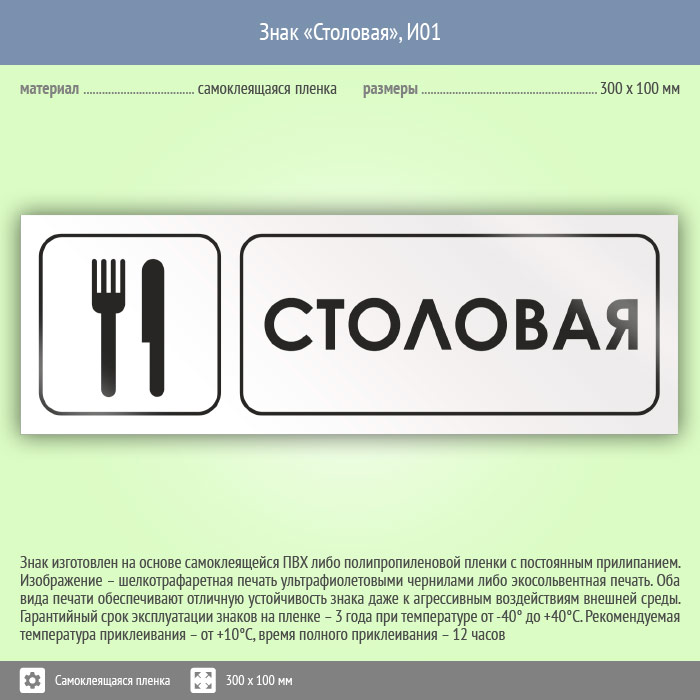 Знак «Столовая», И01 (пленка, 300х100 мм) в Альметьевске купить