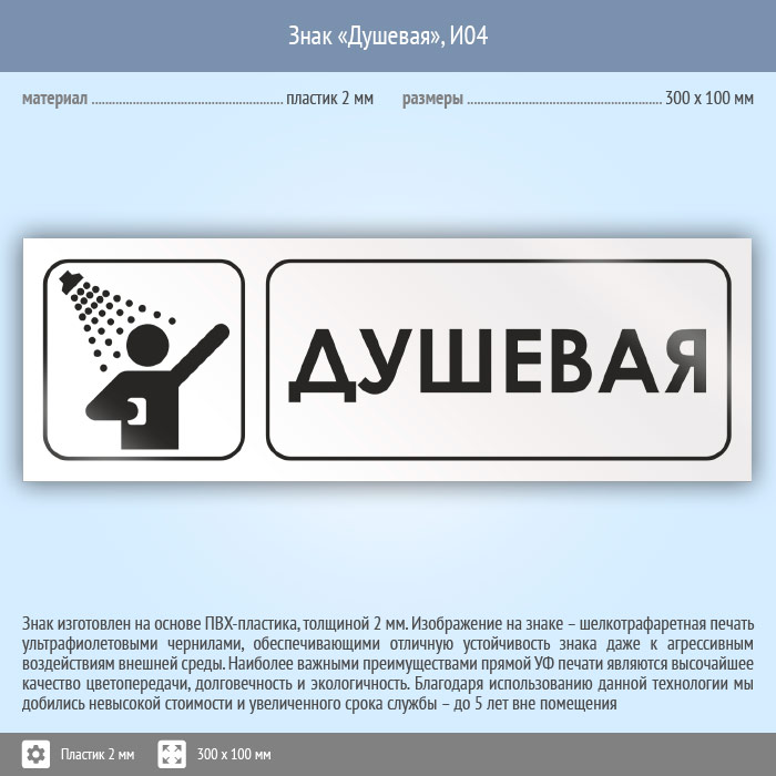 Знак «Душевая», И04 (пластик, 300х100 мм) в Альметьевске купить