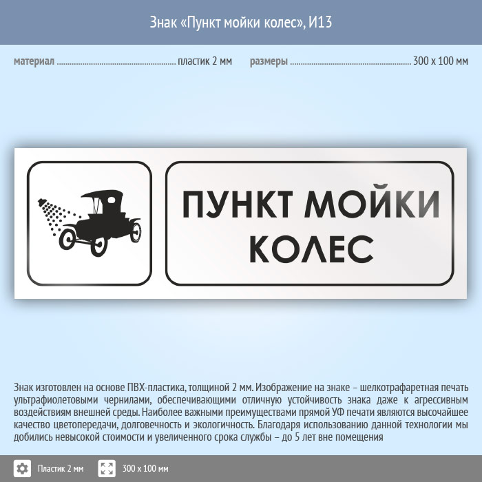 Знак «Пункт мойки колес», И13 (пластик, 300х100 мм) в Альметьевске купить