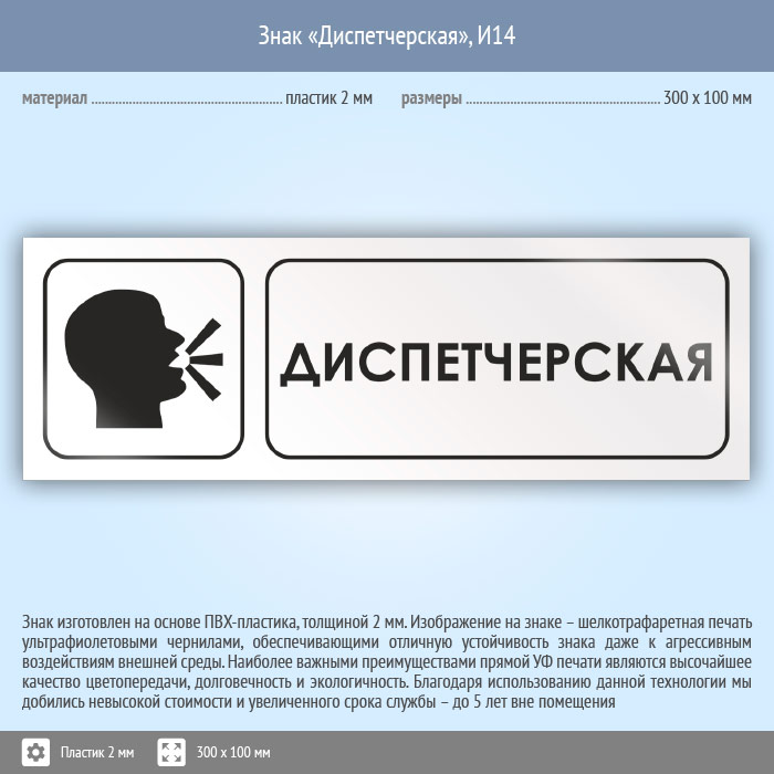 Знак «Диспетчерская», И14 (пластик, 300х100 мм) в Альметьевске купить