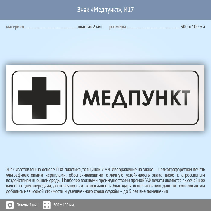 Знак «Медпункт», И17 (пластик, 300х100 мм) в Альметьевске купить
