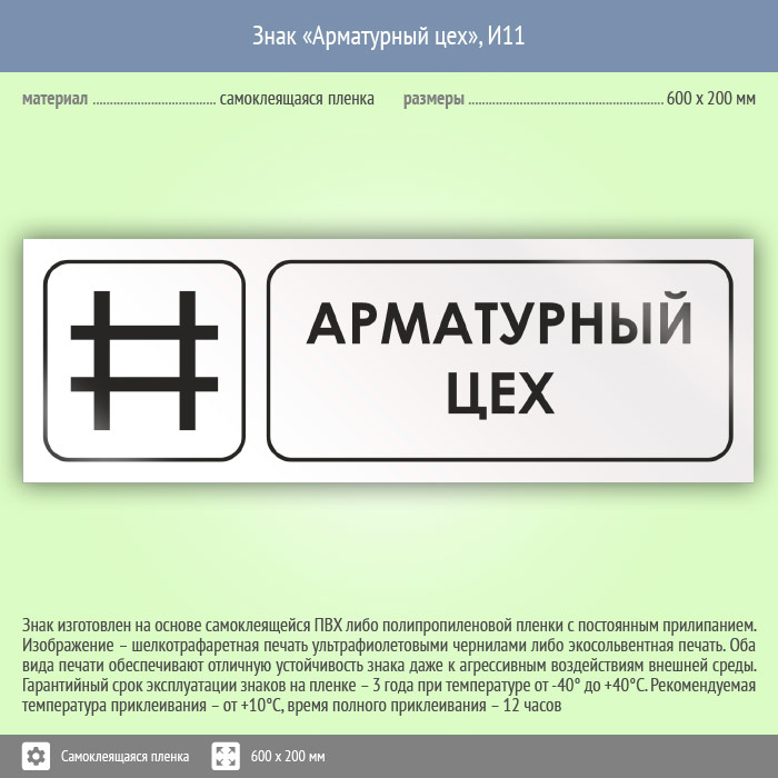 Знак «Арматурный цех», И11 (пленка, 600х200 мм) в Альметьевске купить