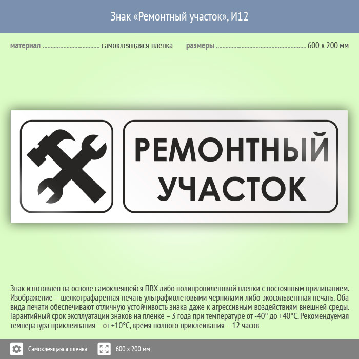 Знак «Ремонтный участок», И12 (пленка, 600х200 мм) в Альметьевске купить
