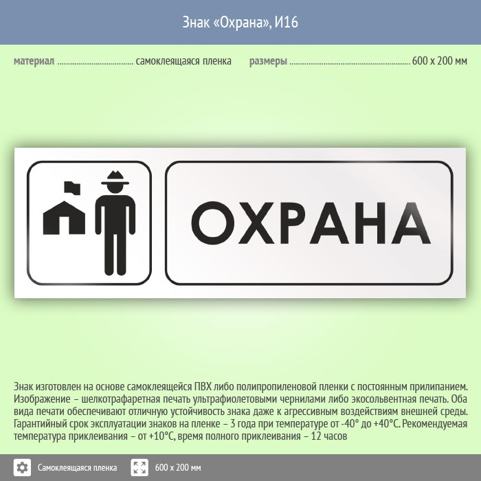 Знак «Охрана», И16 (пленка, 600х200 мм) в Альметьевске купить