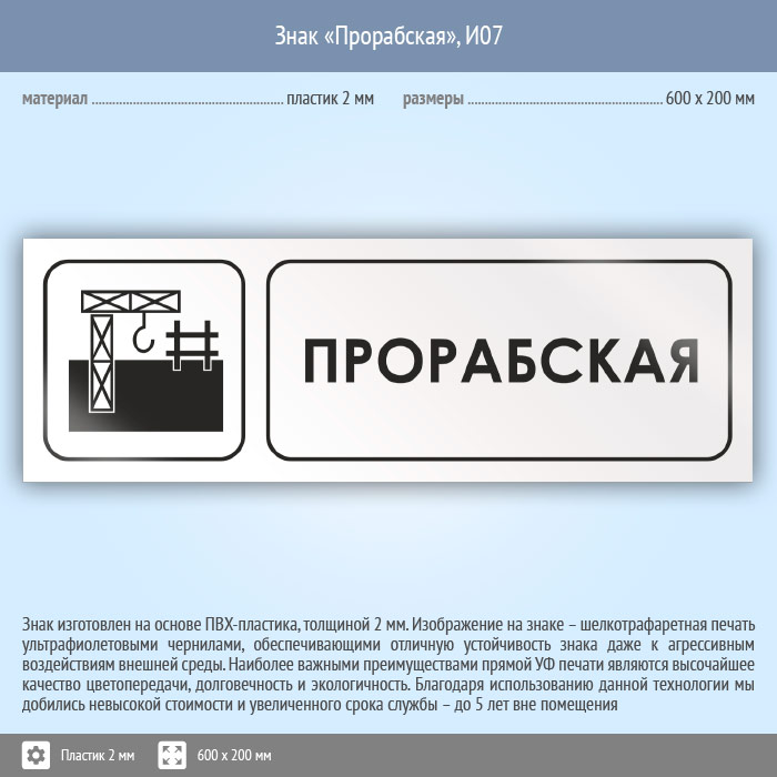 Знак «Прорабская», И07 (пластик, 600х200 мм) в Альметьевске купить