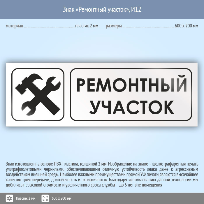 Знак «Ремонтный участок», И12 (пластик, 600х200 мм) в Альметьевске купить