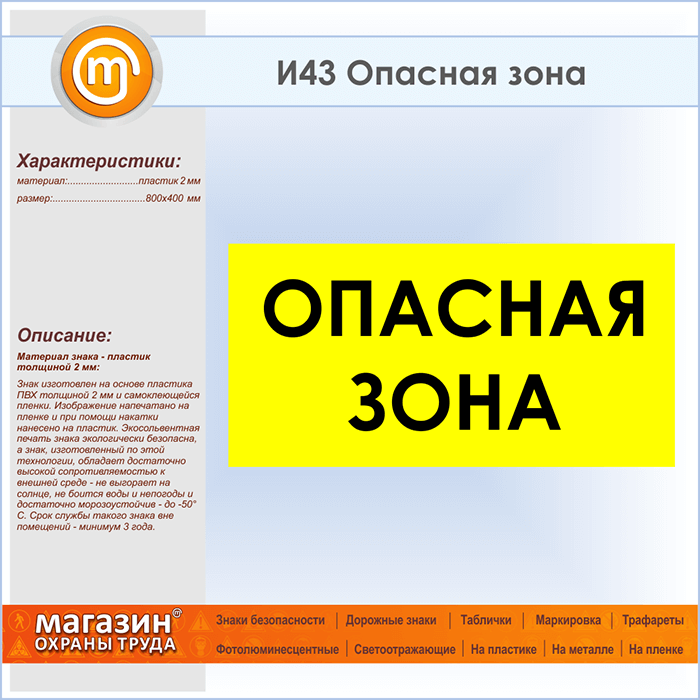 Знак «Опасная зона», И43 (пластик, 800х400 мм) в Альметьевске купить