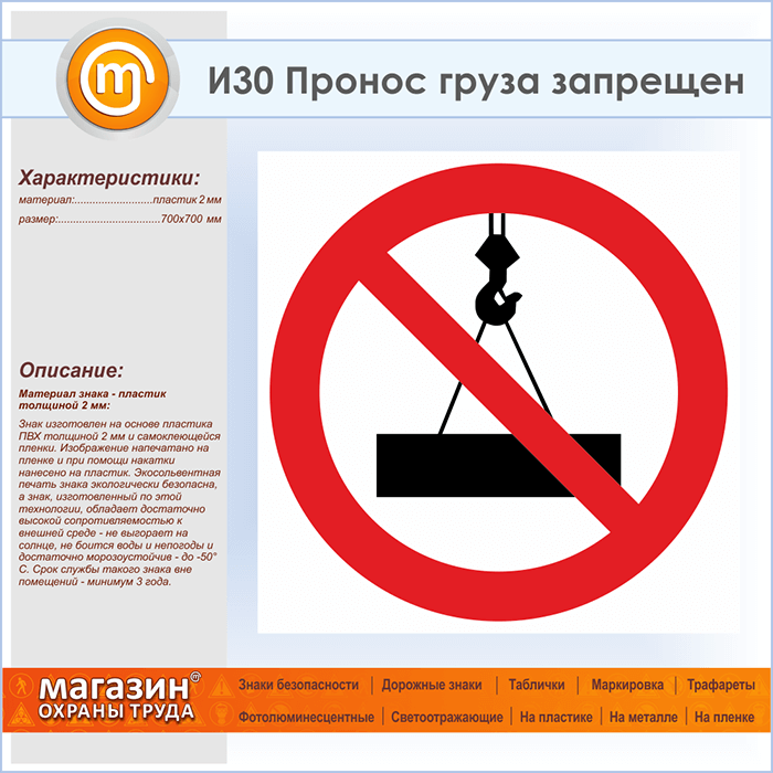Знак «Пронос груза запрещен», И30 (пластик, 700х700 мм) в Альметьевске купить