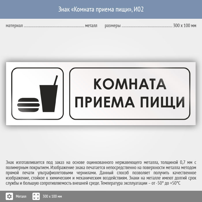 Знак «Комната приема пищи», И02 (металл, 300х100 мм) в Альметьевске купить