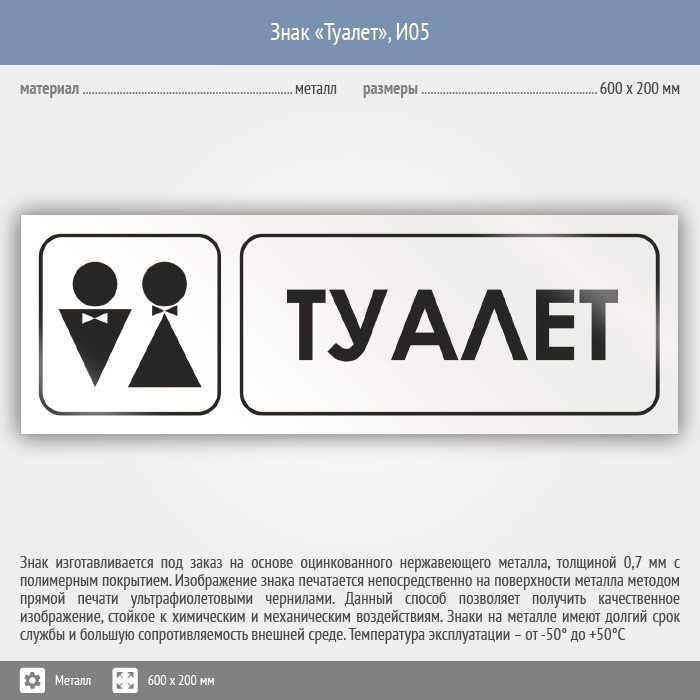 Знак «Туалет», И05 (металл, 600х200 мм) в Альметьевске купить