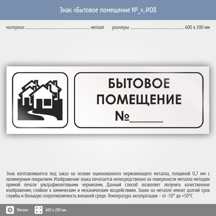 Знак «Бытовое помещение №_», И08 (металл, 600х200 мм) в Альметьевске купить