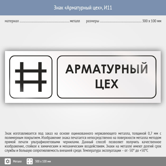 Знак «Арматурный цех», И11 (металл, 300х100 мм) в Альметьевске купить