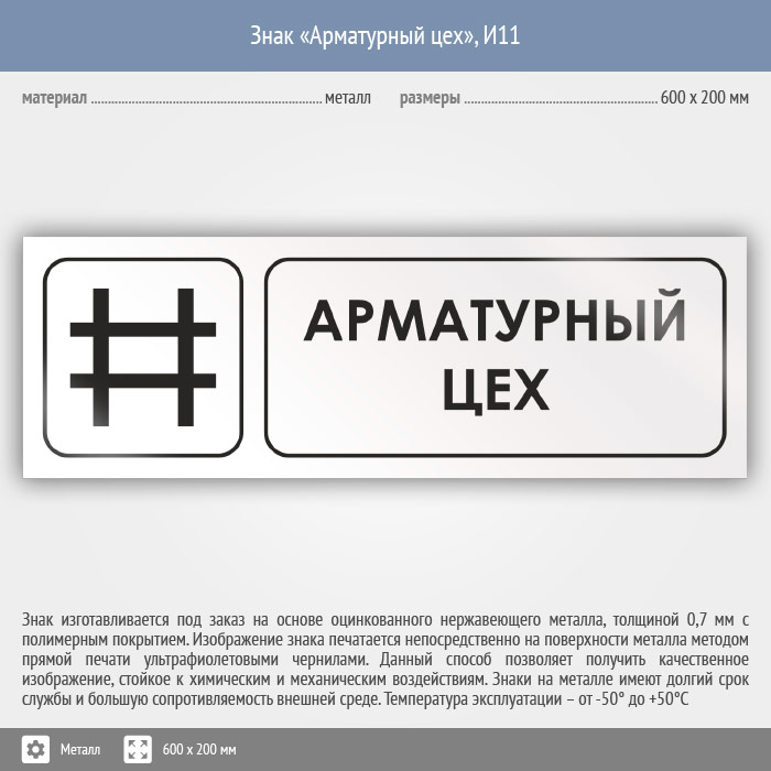 Знак «Арматурный цех», И11 (металл, 600х200 мм) в Альметьевске купить
