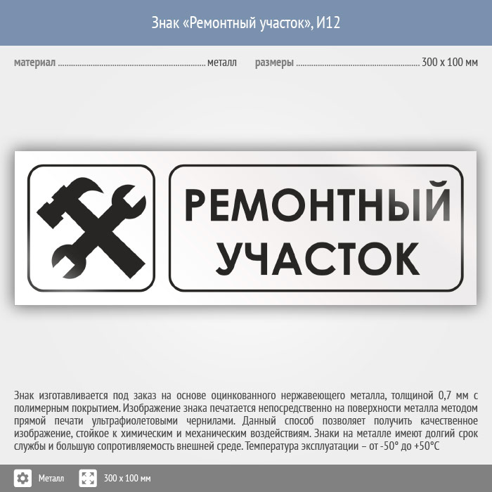 Знак «Ремонтный участок», И12 (металл, 300х100 мм) в Альметьевске купить