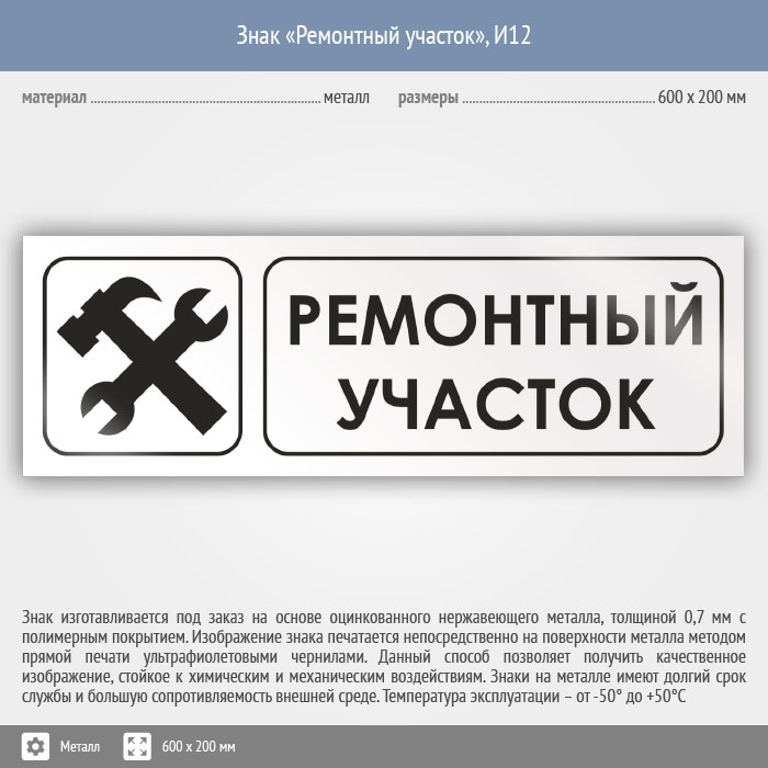 Знак «Ремонтный участок», И12 (металл, 600х200 мм) в Альметьевске купить